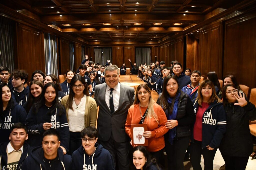 En el marco del Programa Provincial «Conociendo Mi Provincia”, un contingente integrado por 85 alumnos del Instituto San Alfonzo de Ligorio, de la ciudad de Añatuya, visitó este miércoles Casa de Gobierno, donde fueron recibidos en representación del gobernador Gerardo Zamora por el ministro de Obras, Servicios Públicos y Agua, Aldo Hid, recibió este miércoles en Casa de Gobierno
