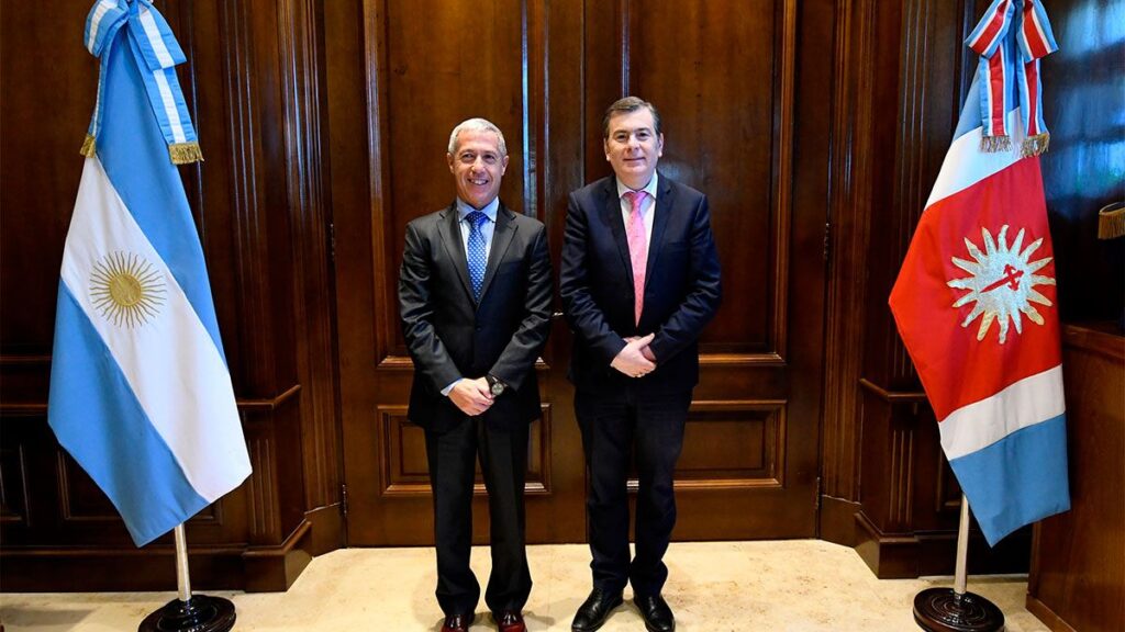 La reunión se llevó a cabo en el Salón de Acuerdos, donde fueron recibidos el consejero del Interior de la Embajada de España en Argentina, Francisco Arenas Morales, y el asesor de seguridad David Bokesa.