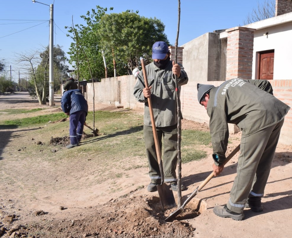 El programa de arbolado urbano de la Municipalidad de la Capital avanzó con una nueva plantación en el barrio Borges, en donde comenzó en el sector Los Lagos.