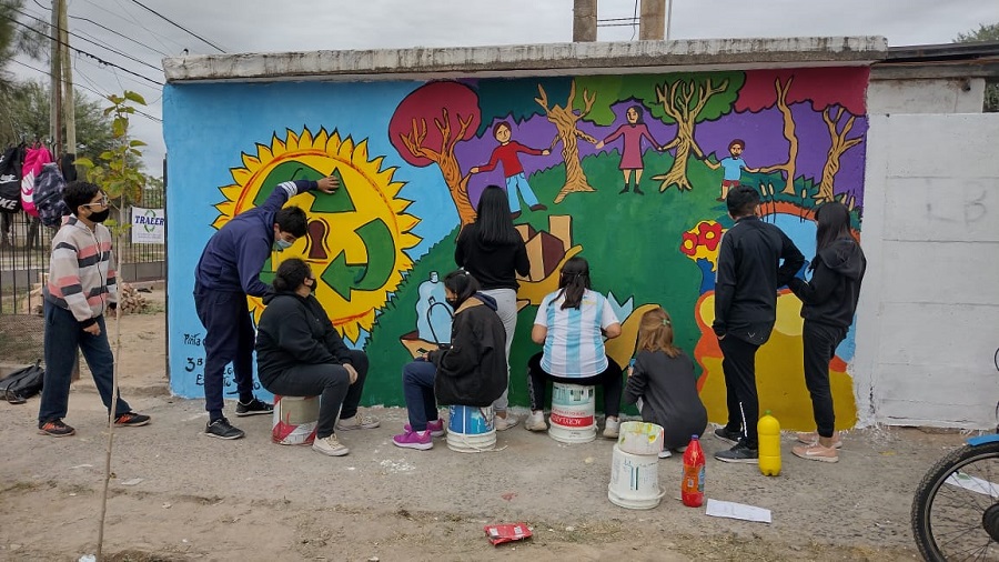 Organizada por la Municipalidad de la Capital, a través de la Dirección de la Juventud, la jornada fue protagonizada por los estudiantes de 3° «B», en colaboración con la asociación civil TRAEER, con la coordinación de la docente y artista plástica Lucrecia Jiménez. Cabe recordar que este proyecto educativo juvenil impacta en diferentes instituciones como colegios, asociaciones civiles y clubes deportivos de la ciudad. Este año, alcanzará a 15 organizaciones que trabajarán durante dos jornadas, siendo la primera de sensibilización, donde los alumnos o la comunidad tratarán una temática específica en base a un boceto y, en la segunda, se ejecutarán los murales diseñados.