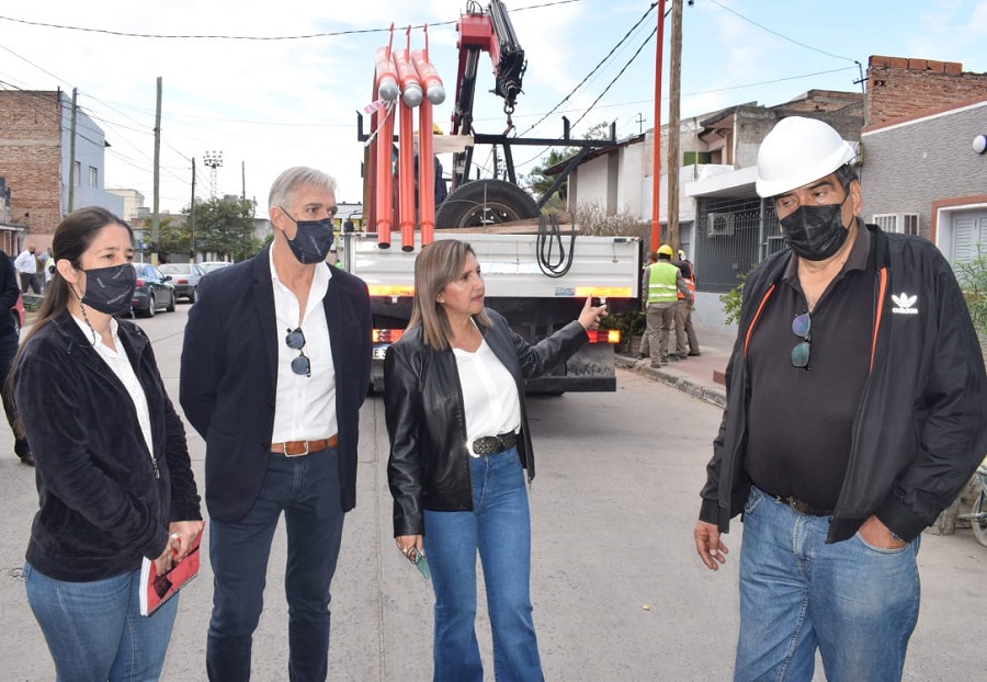 Durante su recorrido, la Ing. Fuentes observó el izaje de las columnas que formarán parte del renovado alumbrado público. Estuvo acompañada por los secretarios de Planeamiento, Obras y Servicios Públicos, Arq. Jorge Vila y de Gobierno, Ing. Néstor Machado. Allí también dialogó con vecinos, quienes destacaron la realización de los trabajos. La jefa comunal indicó que se trabaja sobre 2.000 metros lineales con la colocación de 90 columnas y la instalación de lámparas de 160 vatios y que en este caso abarca a los corredores transversales de este a oeste que tiene la ciudad.