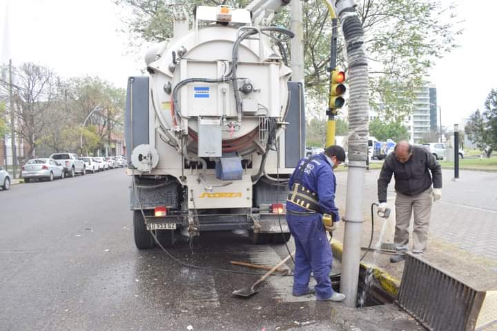 En esta oportunidad, los trabajos consistieron en la limpieza de las cámaras de las bocas de tormenta mediante el aspirado de los sedimentos existentes con un camión desobstructor.