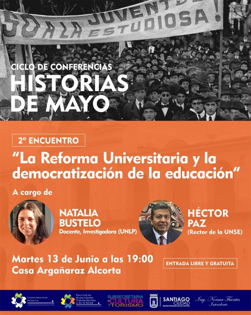 El encuentro será desde las 19 en la Casa Argañaraz Alcorta y contará con un panel conformado por la investigadora, Dra. Natalia Bustelo, de la Universidad Nacional de la Plata; y el rector de la Universidad Nacional de Santiago del Estero, Ing. Héctor Rubén Paz; quienes abordarán como tema central “la Reforma Universitaria de 1918 y la democratización de la educación”.