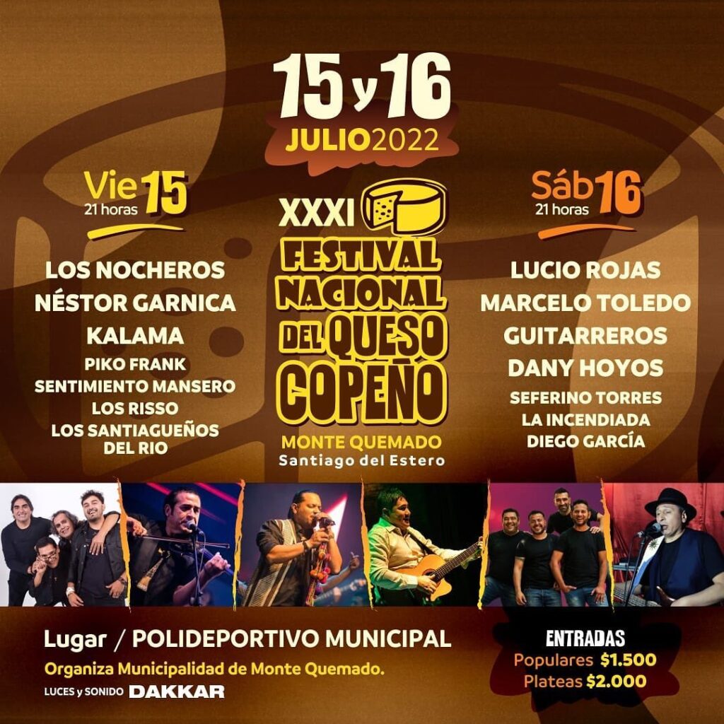 El Municipio de la ciudad de Monte Quemado -cabecera del departamento Copo-, que conduce el intendente Manuel Osvaldo Castillo, organiza este viernes 15 y sábado 16 de julio la 31°edición del Festival Nacional del Queso Copeño.
