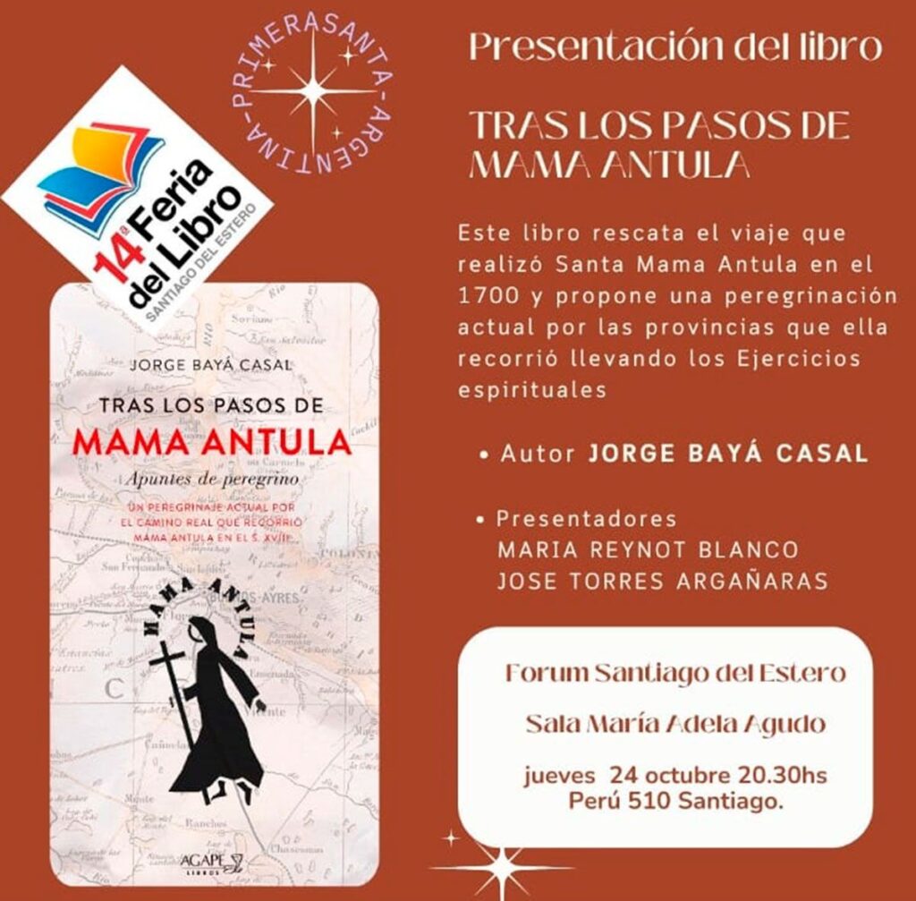 Uno de los momentos destacados de la feria será la presentación del libro «Tras los pasos de Mama Antula«, escrito por Jorge Bayá Casal. La obra, que relata el histórico viaje realizado por Santa Mama Antula en el siglo XVIII, será presentada el jueves 24 de octubre a las 20:30 horas en la sala María Adela Agudo. El autor, Jorge Bayá Casal, estará acompañado por María Reynot Blanco y José Torres Argañaras, quienes también participarán de la presentación. «Tras los pasos de Mama Antula» no solo destaca la labor evangelizadora de Santa Mama Antula, quien recorrió diversas provincias llevando los ejercicios espirituales, sino que además invita a realizar una peregrinación moderna siguiendo los pasos de esta importante figura religiosa.
