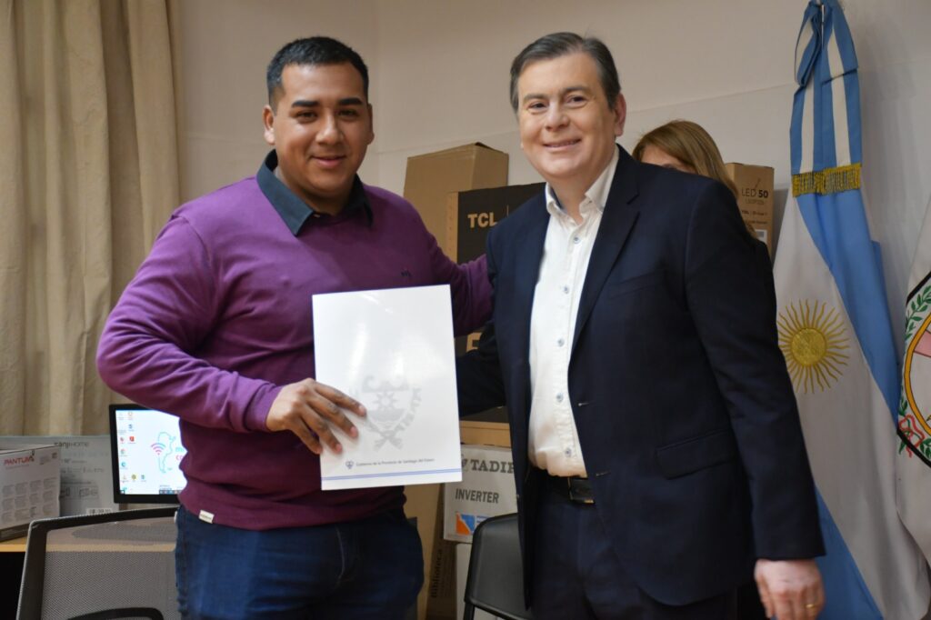 En este marco se realizó la entrega de equipos tecnológicos a municipios y comunas donde se ejecutará este programa que promueve el desarrollo digital de los gobiernos provinciales y municipales, reduciendo la brecha digital con más conectividad, adquisición de bienes tecnológicos, formación y capacitación; llevando también oferta de servicios como en este caso la de Dirección de Registro Civil para más de 30 localidades del interior santiagueño a quienes se les proveerá internet satelital en puntos abiertos y cerrados en base a herramientas para una integración al uso de plataformas y aplicaciones que aportan a la construcción de una gestión pública ágil, sustentable y transparente.