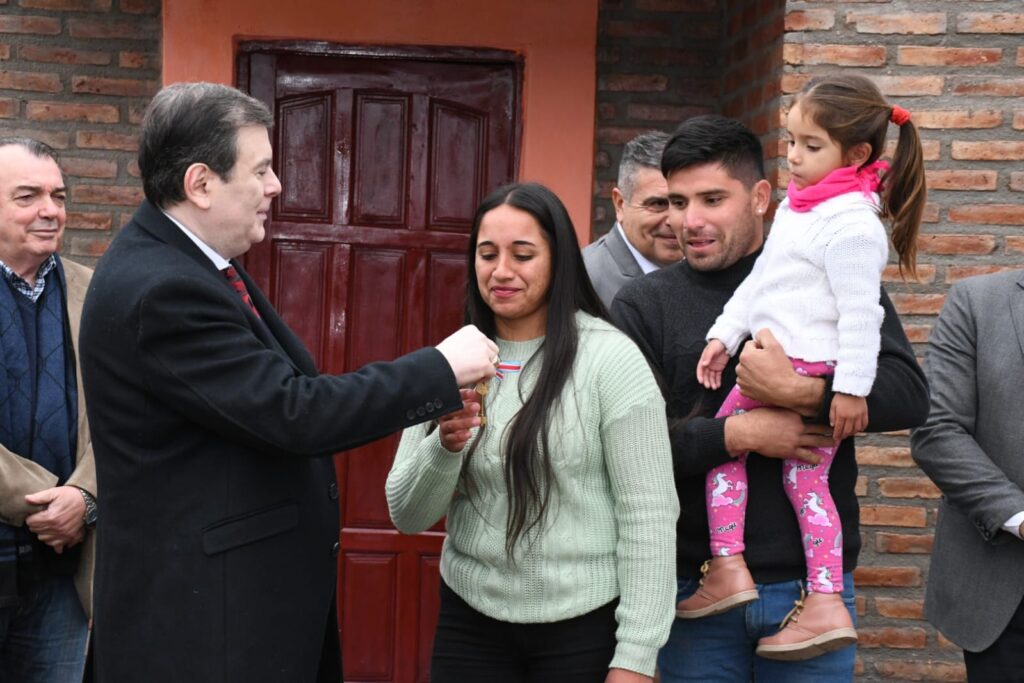 Luego de dejar oficialmente habilitadas las instalaciones del centro de salud y del jardín de infantes, la comitiva se trasladó a la vivienda de Karen Paz Galván, donde se hizo el corte de cintas y la entrega simbólica de llaves, junto con el comisionado municipal Ernesto Juárez.