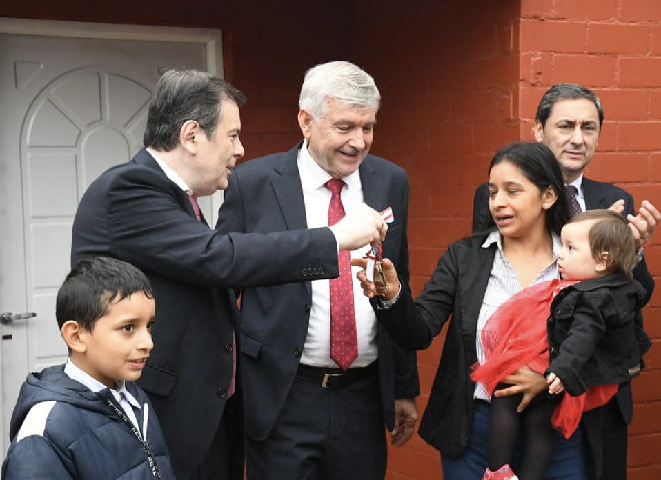 Fueron recibidos por el intendente de Nueva Esperanza, Arnaldo Cazazola, quien los acompañó hasta el domicilio de Miriam Macarena Del Palacio, donde se realizó el corte de cintas y la entrega de llaves simbólica a todos los beneficiarios del programa de Viviendas Sociales.
