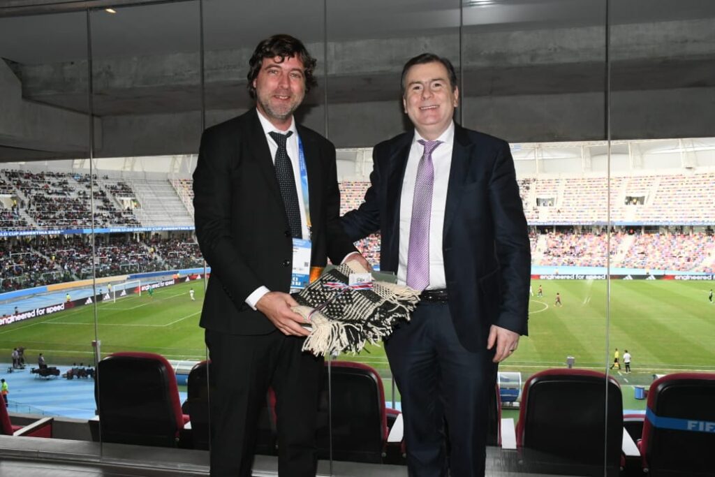Acompañado por el jefe de Gabinete de Ministros, Elías Suárez, el mandatario recibió a los representantes de las asociaciones de fútbol de estos cuatro países. Primero dio la bienvenida al presidente de la Asociación Uruguaya, Ignacio Alonso Labat; luego al titular de la Federación de Gambia, Lamin Kaba Bajo; también al representante de la Federación de Fútbol de Corea del Sur, Chang Woe Ryong, y al presidente de la Comisión de Selecciones de Ecuador y vocal del directorio, Rodrigo Espinoza.