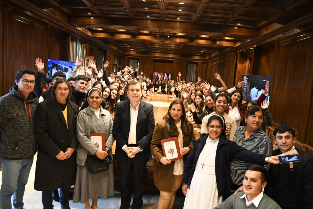 Como parte de las actividades desarrolladas a través del programa «Conociendo mi Provincia», el gobernador Gerardo Zamora recibió este martes a estudiantes del Secundario «Ramón Sánchez Barquet» de la ciudad de Bandera, departamento Belgrano; del Colegio «San Carlos Borromeo» de Tacañitas, departamento Taboada; del Secundario «Jorge Washington Ábalos» y del Agrupamiento 86.163, estos dos últimos de la ciudad de Los Telares, Salavina.